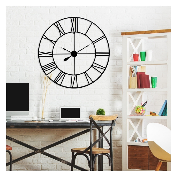 The metal wall clock features a distressed white painted metal, embossed body with rustic black roman numeral markings and arms, distressed creative antique metal wall clock, hollow design, no glass lenses. Find many great new & used options and get the best deals for roman numeral wall clock at the best online prices at ebay! Shop alibaba.com for unique and functional numerals wall clocks to add style to rooms and efficiently track time. 16/24 inch round shape black large metal skeleton roman numeral wall clock metal wall clock home kitchen living room decoration. Clock shows ten to twelve 11.